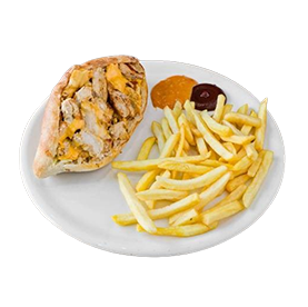 Marinade mixte (poulet chika et poulet au crème), fromage cheddar.