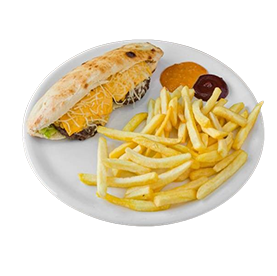 2 Steaks, fromage cheddar, jambon de dinde, oeuf.