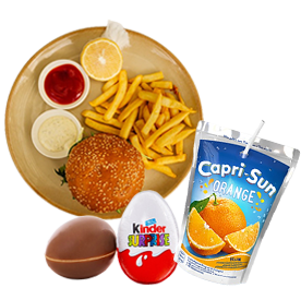 1 Cheese burger + Frites + Capri sun + Kinder surprise.
