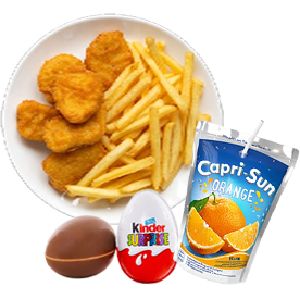 4 Nuggets + Frites + Capri sun + Kinder surprise.